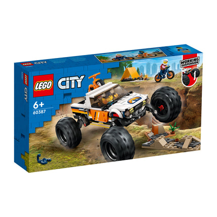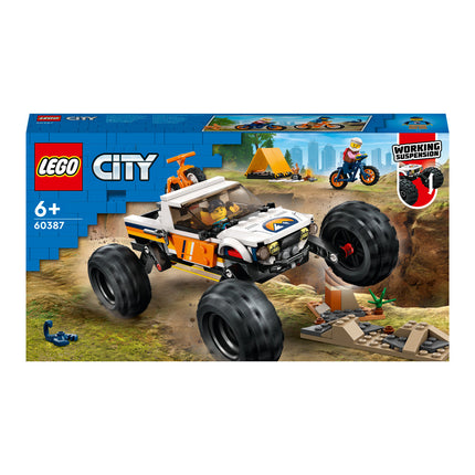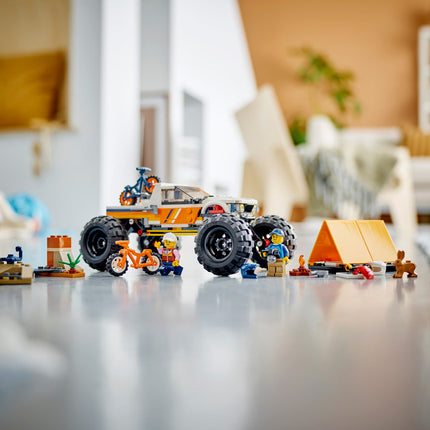 V terenskem vozilu 4x4 se zapelji prek odprte pokrajine, da najdeš razburljivo mesto za taborjenje! Trpežno vozilo ima ogromna kolesa in zelo močno vzmetenje za razdrapane terene. Ko prideš na cilj, s terenca snemi gorski kolesi, vzemi čeladi in pojdi raziskovat! Uporabi fotoaparat, da narediš posnetke divjih živali. Nato postavi šotor, prižgi taborni ogenj in skuhaj večerjo, preden se zakoplješ v udobno spalno vrečo. Kakšen dan!