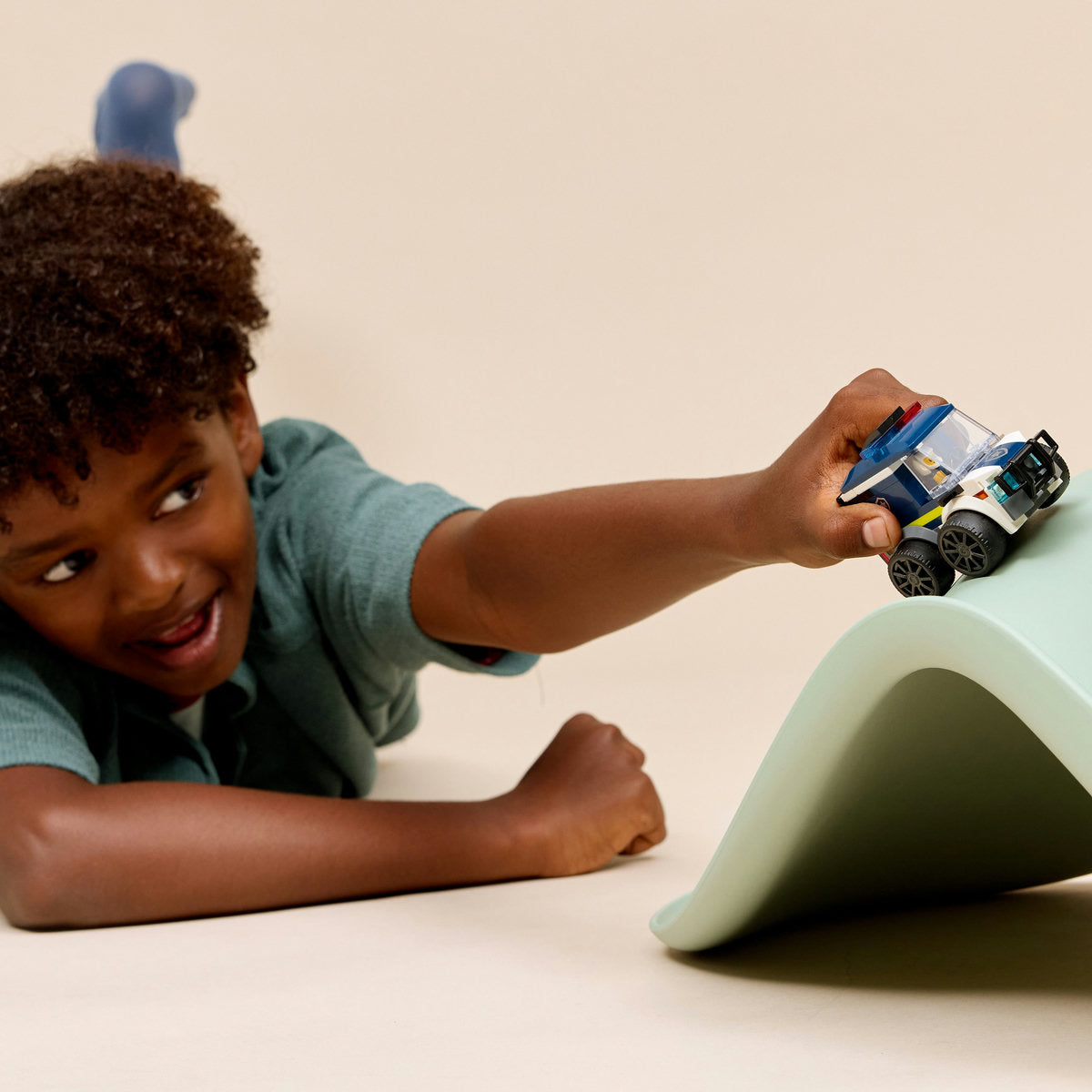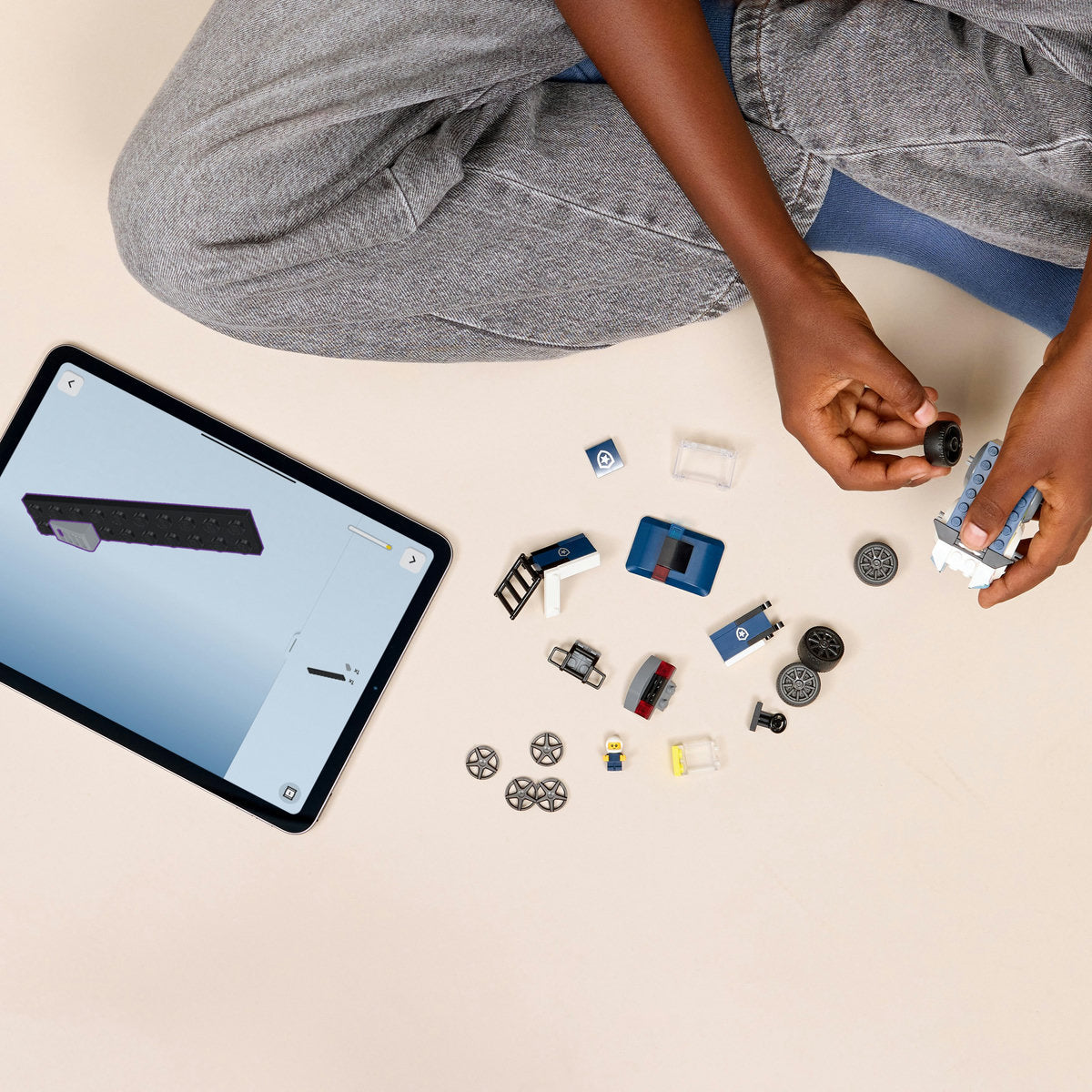Z igralnim kompletom LEGO City Prevozi – Policijsko vozilo lahko otroci uživajo v intuitivnem sestavljanju z aplikacijo LEGO Builder, ki omogoča povečevanje in vrtenje navodil v 3D-pogledu, shranjevanje in sledenje napredka – vse kar v aplikaciji. V kompletu je 71 koščkov.