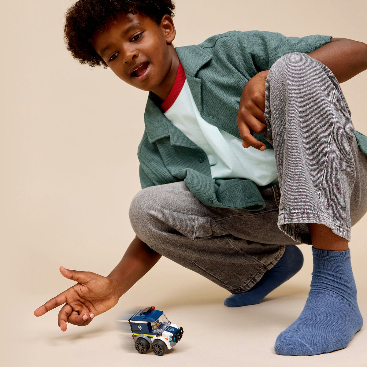 Preprosto policijsko vozilo, ki je del zbirke serije LEGO City Prevozi, je kot nalašč za majhne otroke in je odlično priložnostno ali rojstnodnevno darilo za fante, dekleta in otroke, ki obožujejo avtomobile in domišljijsko igro. Dodaj ga drugim kompletom LEGO City (naprodaj ločeno) za še več pustolovščin.