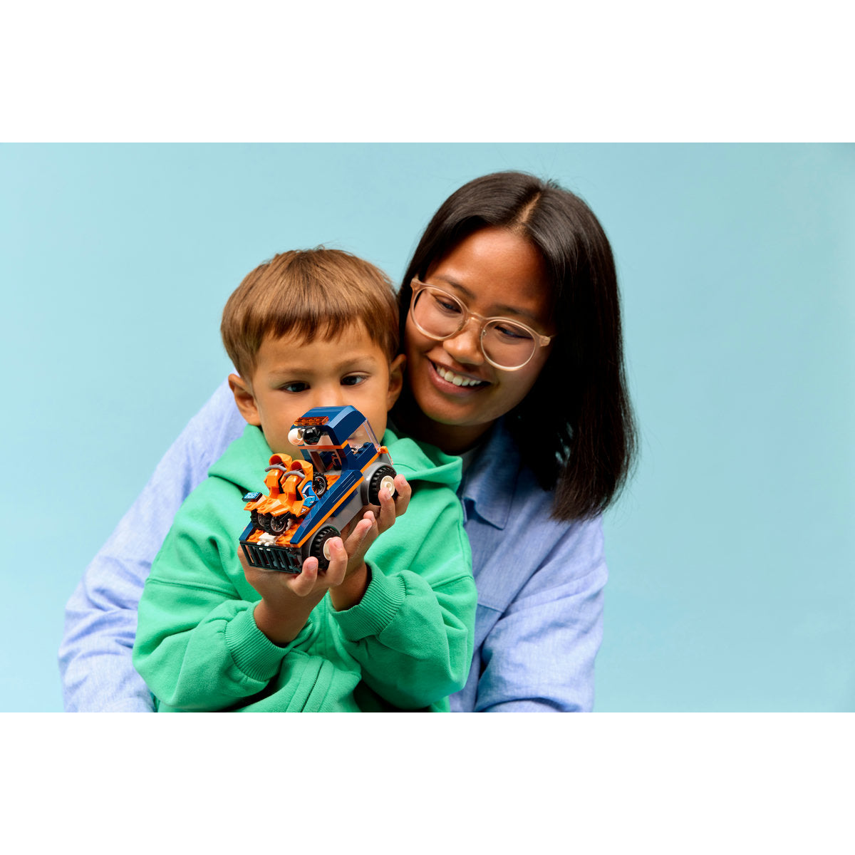 Igralni komplet je zabavno priložnostno ali rojstnodnevno darilo za fante in dekleta, ki obožujejo domišljijsko igro. Vozila lahko dodaš drugim kompletom za sestavljanje (naprodaj ločeno) iz palete LEGO City za še več dirkaške akcije. V kompletu je 88 koščkov.