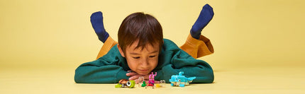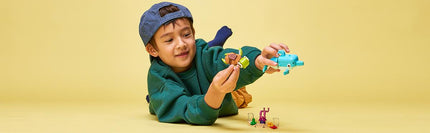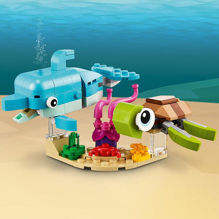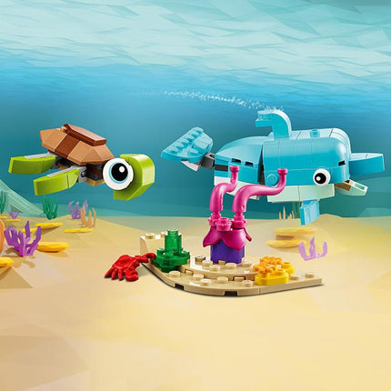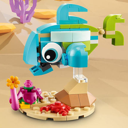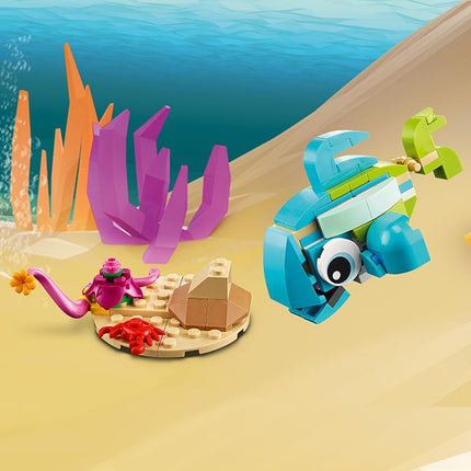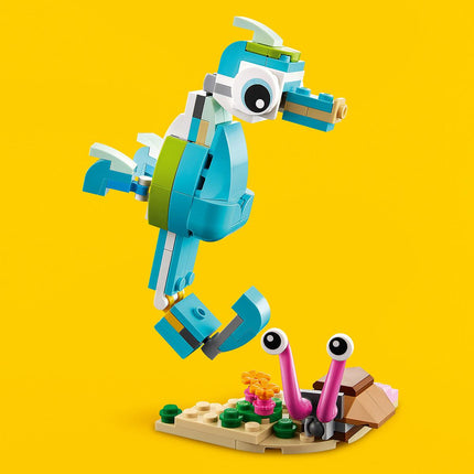 Pljusk! Potopi se na dno morja, kjer boš lahko užival med prikupnimi morskimi živalcami. Spoprijatelji se z malim delfinčkom in malo želvico. Za še več podvodne zabave lahko namesto njiju sestaviš kulskega morskega konjička in polža, ali pa lepo ribo in rakovico z velikimi kleščami. Lahko pa kocke uporabiš, da sestaviš nekaj povsem novega. S tem fantastičnim kompletom 3v1 lahko sam izbiraš, s čim se boš igral.