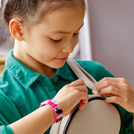 Postani ustvarjalna in oblikuj svoj zabaven nakit s srčkano zapestnico s trendi živalcami! Razpri ljubko rožnato zapestnico in nanjo pritrdi pisane ploščice. Za navdih uporabi embalažo, ali pa si izmisli popolnoma svoj dizajn. Potem dodaj srčkanega zajčka, mačko in stopinje tačk za še več ljubkosti, preden si zapneš zapestnico okoli zapestja in pokažeš svoj stil. Okrasi zapestnico kakor koli hočeš - tolikokrat kot hočeš!