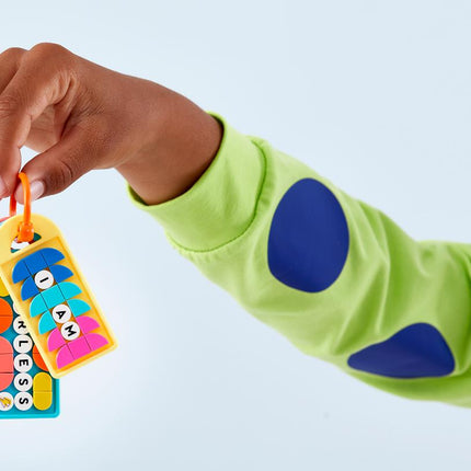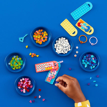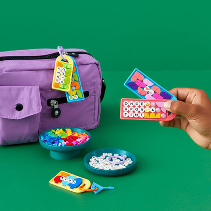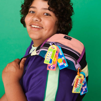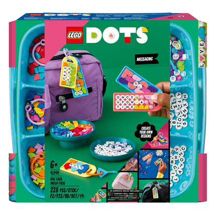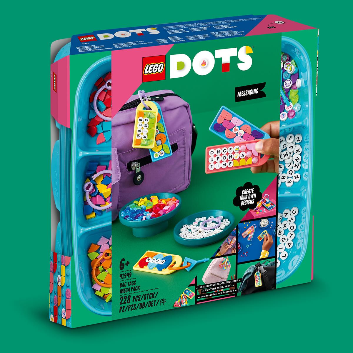 Povej po svoje – s kulskim LEGO® DOTS megapaketom obeskov za torbo! Razpostavi vse obeske v 2 različnih velikostih, dodaj jim ploščice s črkami, da napišeš kulsko sporočilo, nato pa jih okrasi s pisanimi, bleščečimi in poslikanimi ploščicami. Za še več zabave vzemi vrečko Extra DOTS iz 6. serije, ali pa uporabi druge komplete DOTS (v prodaji ločeno). Obeske pripni, kamor želiš, in ves svet bo videl, kaj hočeš povedati!