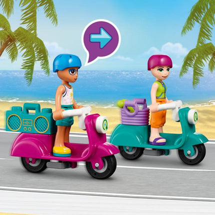 V počitniški hišici na plaži te vedno čaka toliko zabavnih opravil. Na električnem skuterju se odpelji v mesto, da boš nakupila vse potrebno in napolnila hladilnik. Če ob vrnitvi v hišico še ne boš utrujena, lahko z Mio igrata namizni tenis. Lahko pa se sprostiš v bazenu na strehi. Odplavaj do vodnega skuterja in skoči na napihljivo banano. Dobro se drži ... ali pa ne, saj je pasti v vodo tudi zelo zabavno!