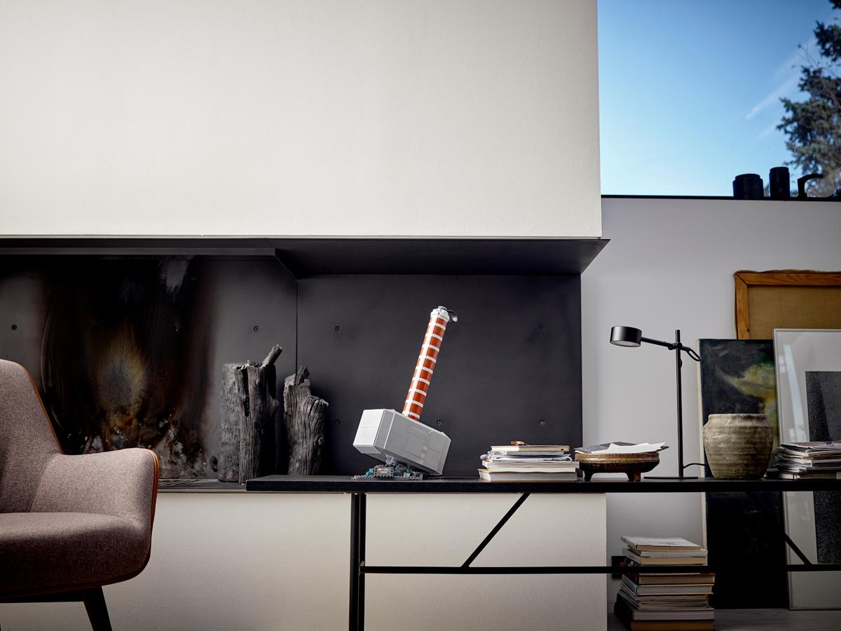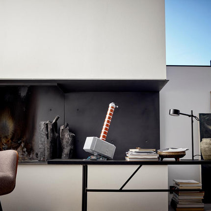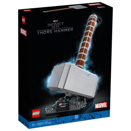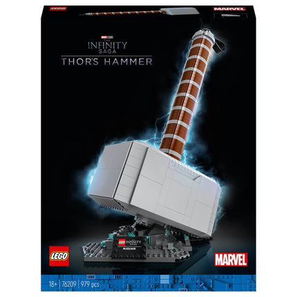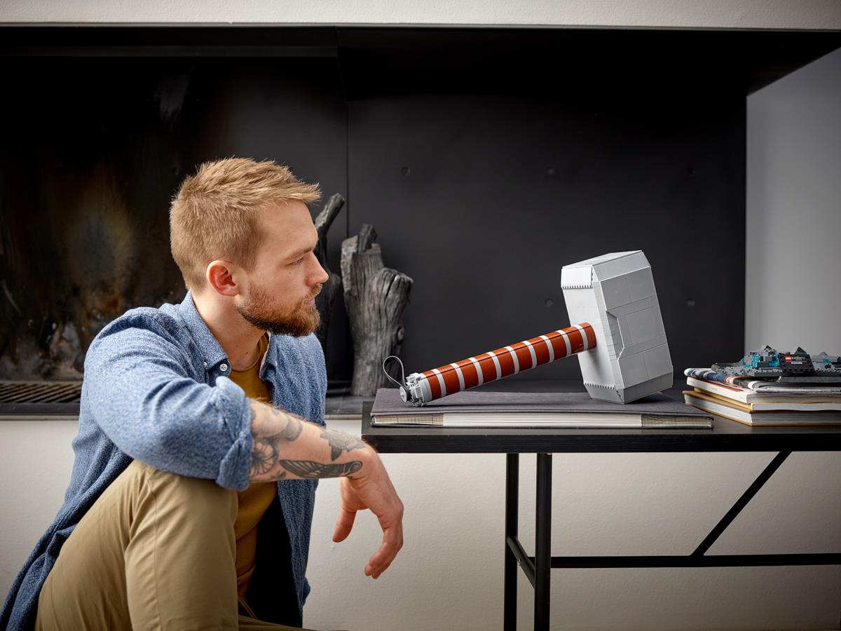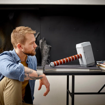 Oglej si slovito Thorovo kladivo. Ljubitelji Marvela bodo takoj prepoznali Mjölnir, čarobno orožje, ki je bilo vedno zelo učinkovito v sagi Neskončnost, 23 filmih Marvel Studios. Z avtentično izdelanim modelom lahko moč Thorovega kladiva vzameš v svoje roke. Poleg modela so v kompletu stojalo, ploščica z logotipom, minifigura Thora ter majhni modelčki rokavice neskončnosti, teserakta in Odinovega ognja.