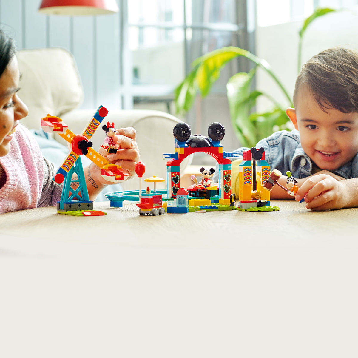 Disneyjeva Miki Miška, Mini Miška in njun prijatelj Pepe so se odpravili v zabaviščni park – pridruži se jim, zelo se bodo zabavali. Miki in Pepe se hočeta peljati z vlakcem smrti. Mini se pripravlja, da bo preizkusila, kako močna je in kako visoko se bo dvignila oznaka. Je že čas za vroče hrenovke ali sladoled? Jaz bi kar oboje! Poglej, kako visoko je veliko kolo! Pridruži se prijateljem, ki so sedli v vozičke, da bi si zabaviščni park ogledali od zgoraj.