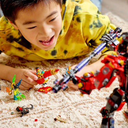 Kličemo vse junake! Zlobni Macaque s šestimi ušesi je ustvaril mogočnega robota. Uporabi Monkie Kidov zemljevid in kompas, da najdeš Ognjene prstane in pripravi Mei na spopad. Raztrešči Shadow Monkeyja. Zaropotaj s Sandyjevo polmesečevo palico. Ustvari top Zlate palice in ustreli proti robotu. A pazi se robotove mogočne palice! Na svoji poti moraš zbrati vse 3 Ognjene prstane, da premagaš nevarnega sovražnika!