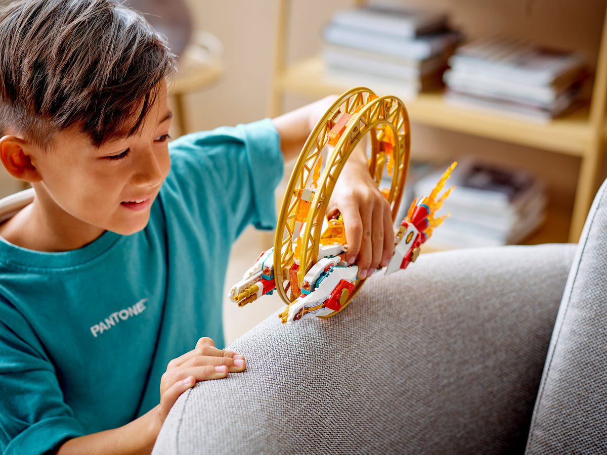 Nevarnost! White Bone Demon je ujel Monkey Kinga v koščeno kletko. Pohiti na pomoč z Nezhom v njegovem ognjeno rdečem Ognjenem prstanu. Z izstreljevalniki ognjene energije ustreli proti prestolu White Bone Demona. Poleti v akcijo na Monkie Kidovem letalniku Zlate palice in proti reaktivcu zlobnega Macaqueja izstreli žebljičke. Uporabi vso moč Ognjenih prstanov, da premagaš sovražnike in rešiš Monkey Kinga!