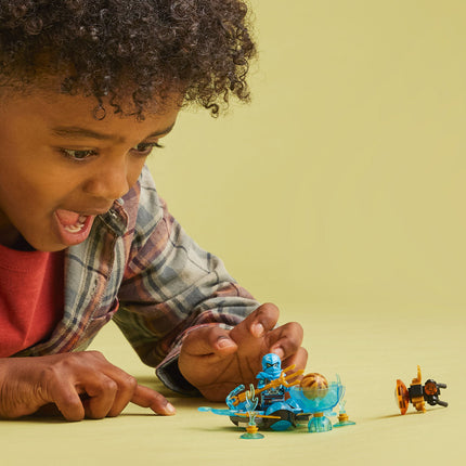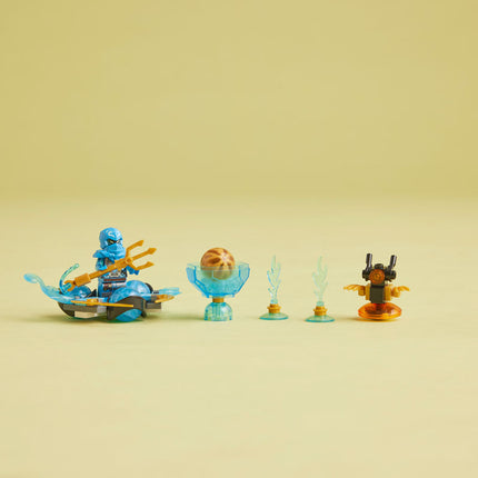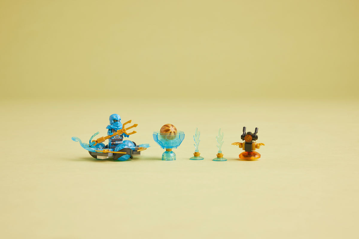 Pripravi se, da boš uril Nyo z zmajsko močjo, da bo izboljšala svoje ninja spretnosti na poligonu z ovirami! Postavi jo v vrtavko, potisni jo naprej in opazuj, kako drsi. Izogniti se mora vodnim oviram, premagati imperiumskega droida s palico in pograbiti dragoceni zlati jedrni element zmajske energije, ki je v skledi. Pridno vadi, da boš zaščitil novi svet NINJAGO®!
