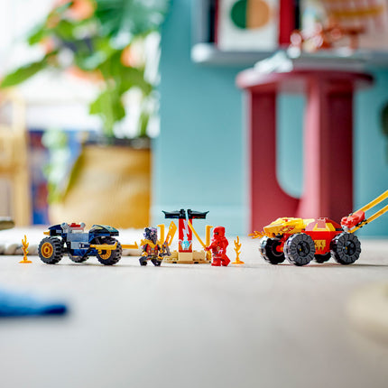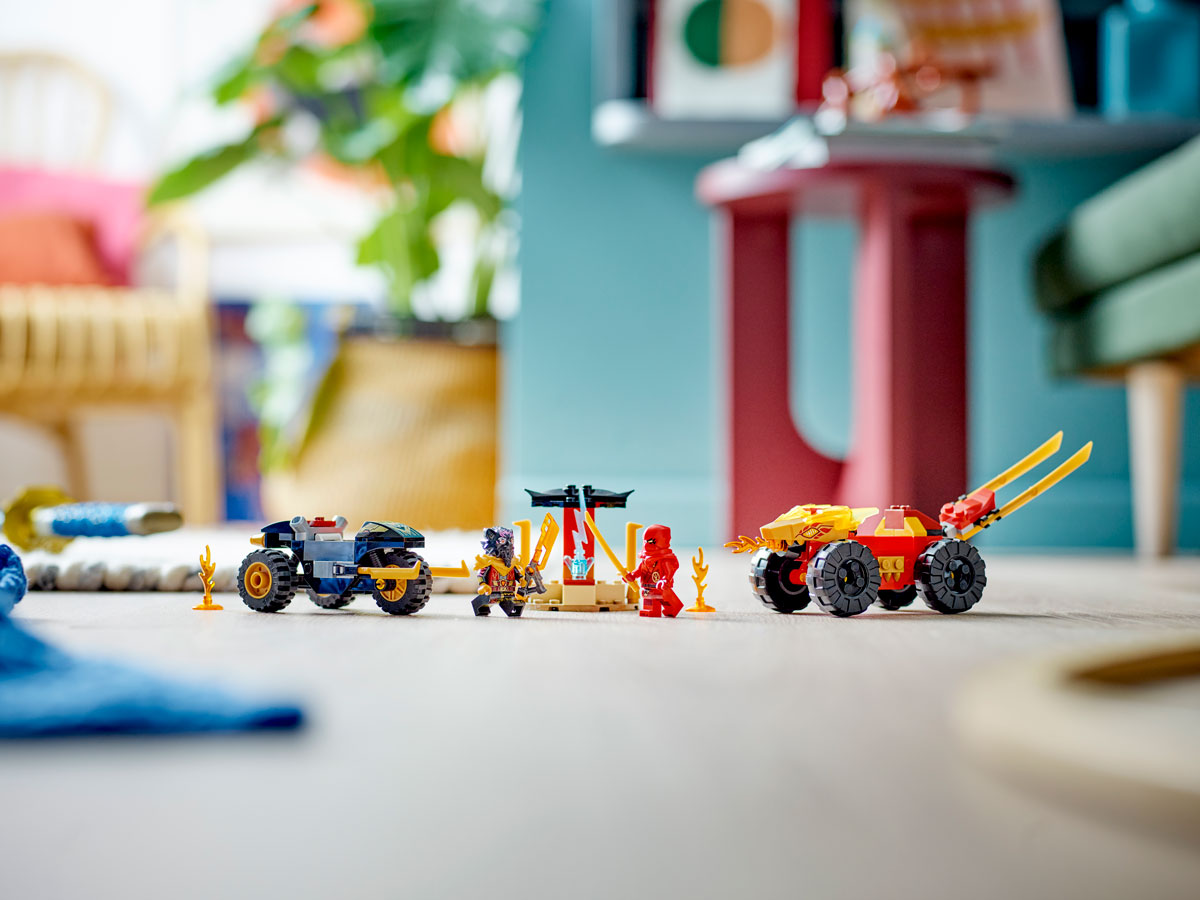 Pripravi se, da se pridružiš Kaiju, ki se bo udeležil hitre dirke proti zlobnemu lovcu na zmaje, lordu Rasu! Sedi za krmilo Kaijevega superkulskega zmajskega avta, navij motor in švigni za lordom Rasom v mogočnem terencu. Ujeti ga moraš, da si ne bo prilastil dragocene modre strele. Prihodnost novega sveta NINJAGO® je odvisna od tebe! Lahko zmagaš v tej dirki?