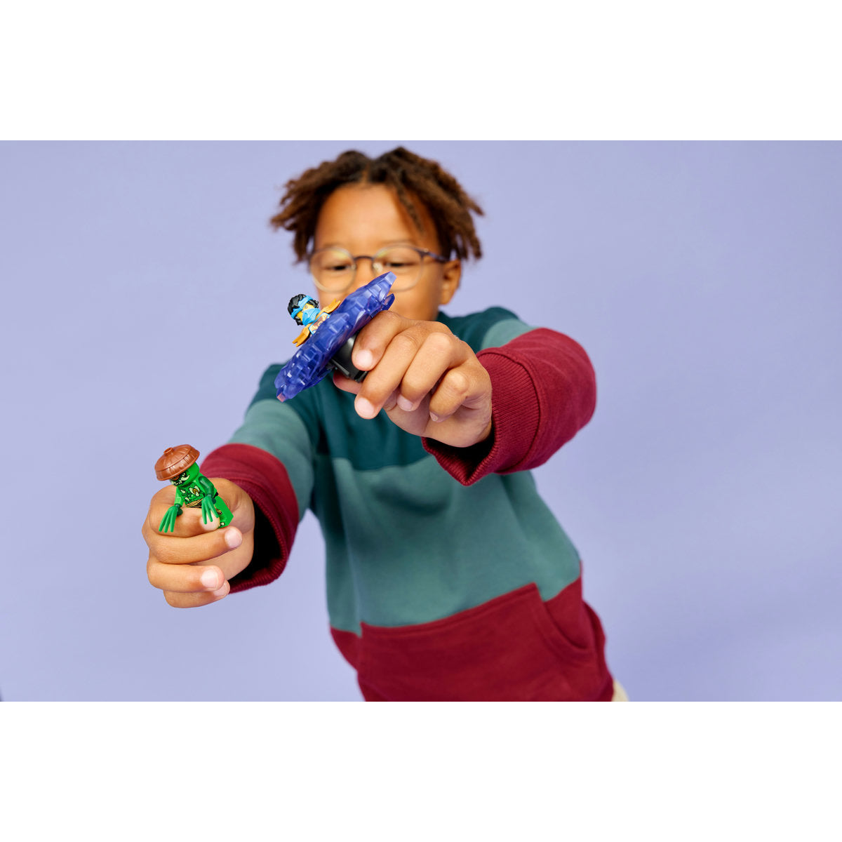 Dečki in deklice, stari 6+, bodo uživali v sestavljanju ninjevske igrače LEGO® NINJAGO® Nya proti mutirani pošastni vrtavki (71849) in poustvarjanju prizorov iz 4. sezone TV-serije NINJAGO Vzpon zmajev. Ko jo sestavijo, otroci pritisnejo gumb za izstrelitev vrtavke in in opazujejo, ali bosta dva elementa moči odletela, ko dosežeta svoj cilj.