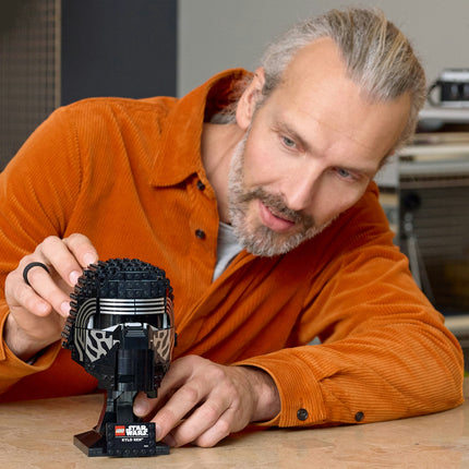 Sestavi spoštovanje do temačnih sil s prvo poustvaritvijo ikonske čelade Kyla Rena, kot smo jo prvič videli v filmu Vojna zvezd: Sila se prebuja. Uporabi LEGO® kocke, med katerimi so edinstveni elementi potiskani s srebrnimi okrasi, da ujameš elegantni dizajn čelade. Svojo stvaritev postavi na stojalo z napisno ploščico, ki dopolnjuje evokativen okras v čast 10. obletnici filma Vojna zvezd: Sila se prebuja.