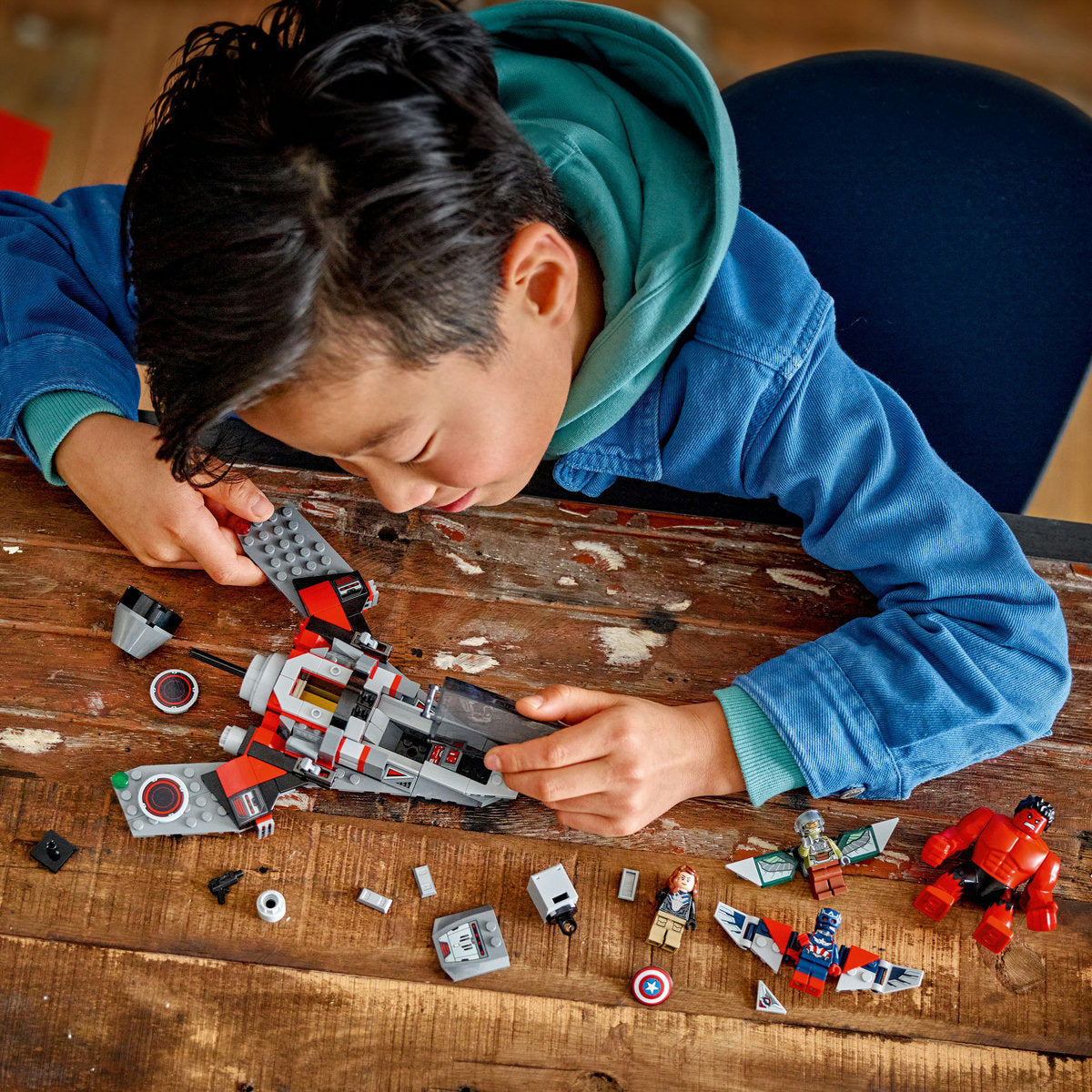• Superjunaška zabava z reaktivcem – LEGO® Marvel Spopad Stotnika Amerike z Rdečim Hulkom je sestavljivo letalo za fante in dekleta, stare 8+, ki otroke popelje v akcijo na veliki višini