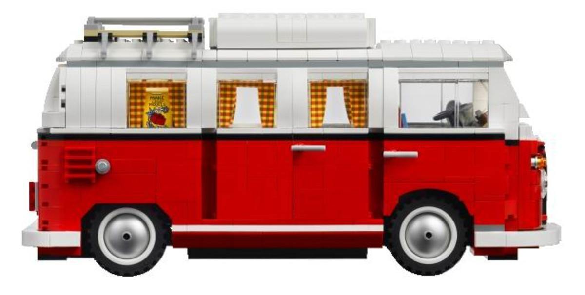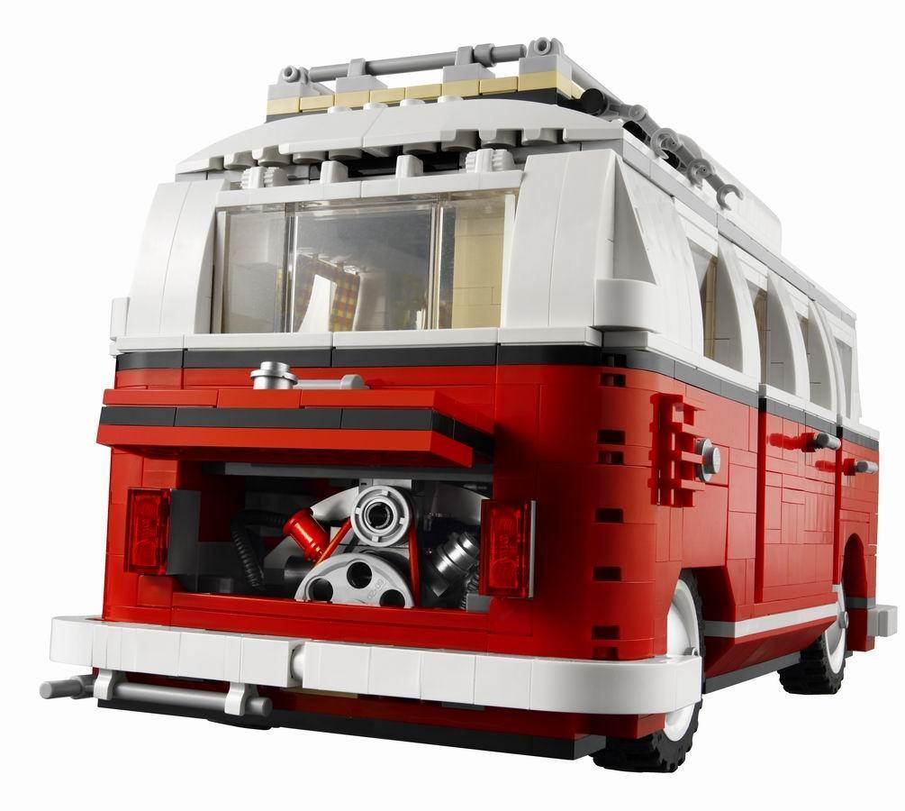 Ta verodostojni avtodom je kopija klasičnega Volkswagnovega avtodoma iz leta 1962. Vsebuje vse legendarne podrobnosti! Zunaj ima bel del v obliki črke V, zaobljeno streho in okenske okvire, vetrobransko steklo v slogu safarija, razdeljeno na dva dela, vrata, ki se odpirajo, legendarno dvignjeno streho z zavesami, strešni prtljažnik, zadnji dovod zraka in veliko več! V notranjosti je enako impresivno okrašen, od pristnega VW-bokserskega štirivaljnega motorja, klopi na sprednjem sedežu, menjalnika, nagibne nadzorne plošče in legendarnega okroglega merilnika hitrosti do podrobnosti, ki jih doda LEGO, na primer zadnje klopi in klubske mizice na zložljivi omara z ogledalom in celo sliko!